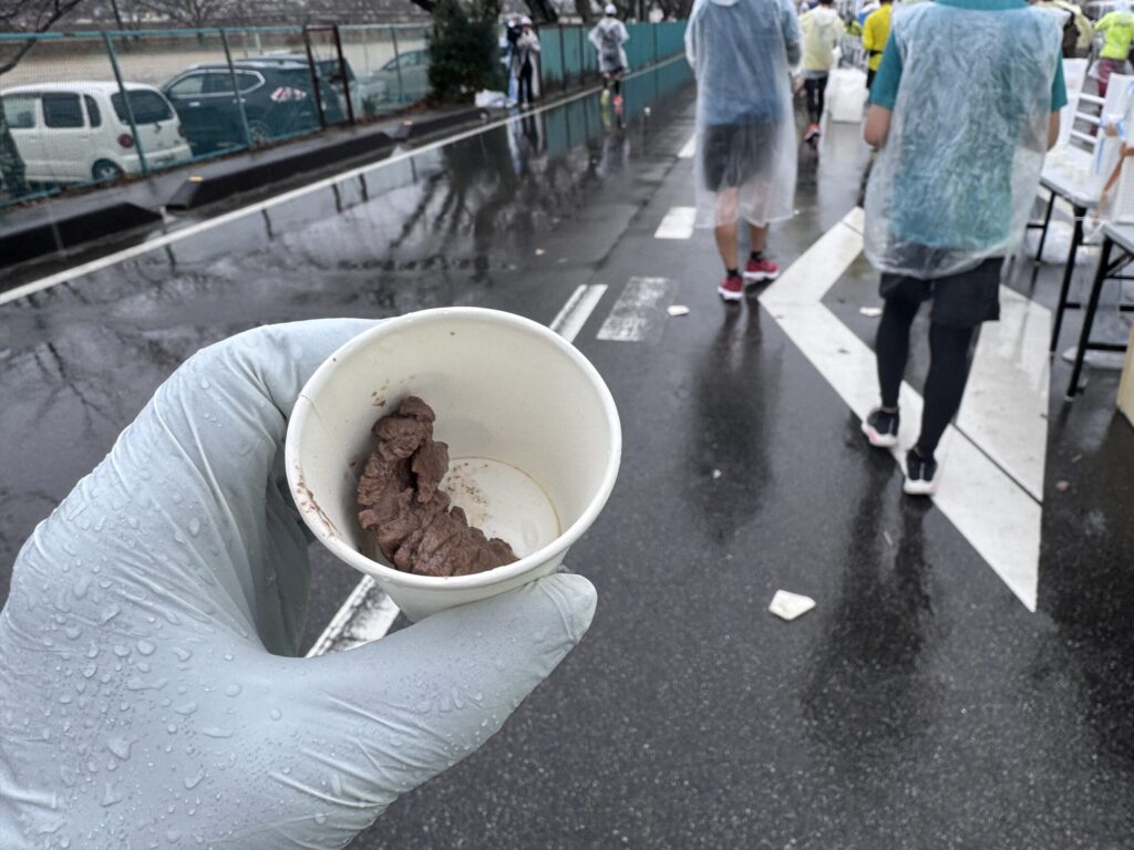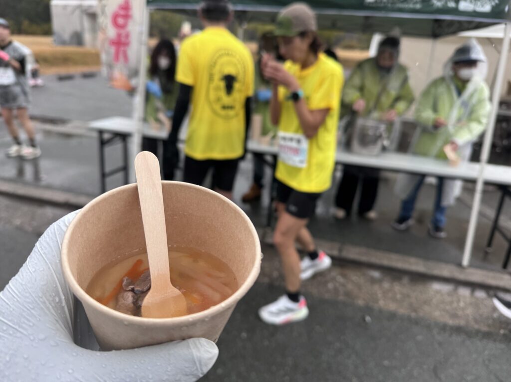 そんな時にちょうど良いタイミングで現れたのが30km地点の「ちゃちゃも汁(松阪牛汁)」です。