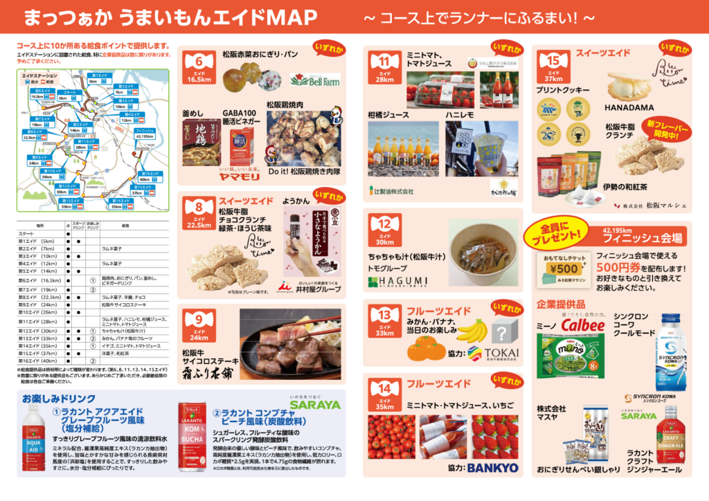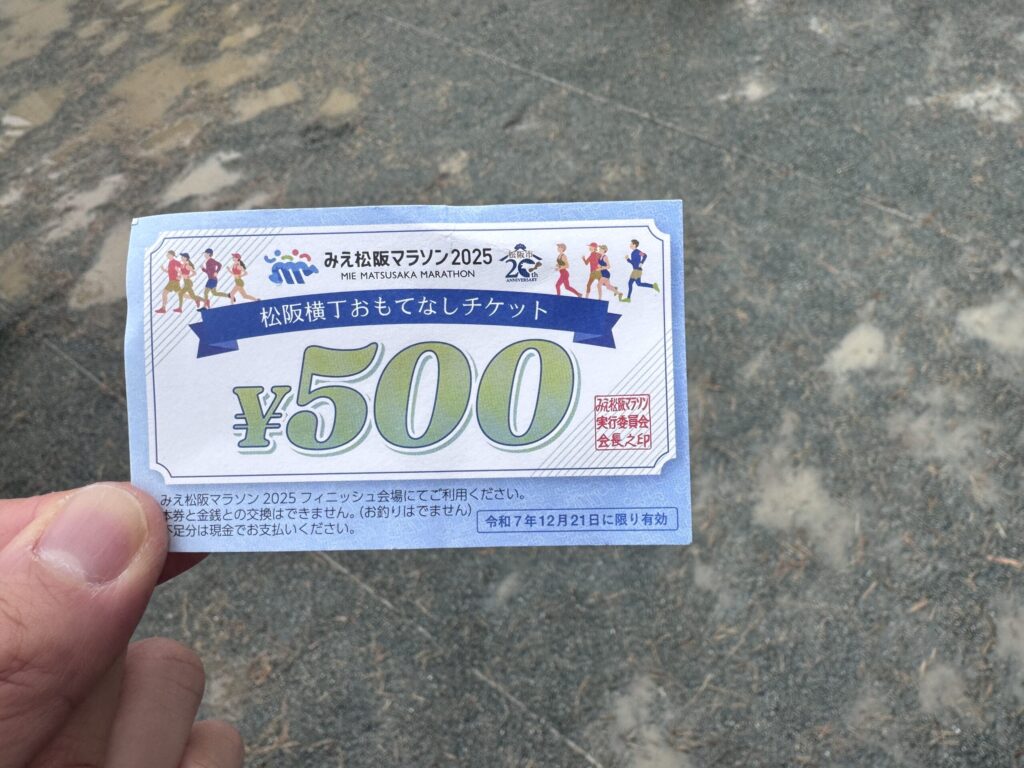 その後、ドリンクやおやつ、フィニッシュ会場の屋台で使える500円券がもらえます。