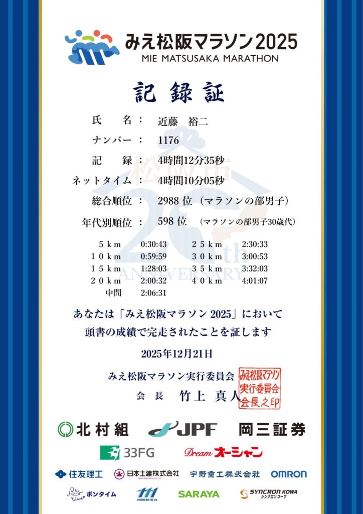 先日、三重県で行われた「みえ松阪マラソン」に参加してきました。